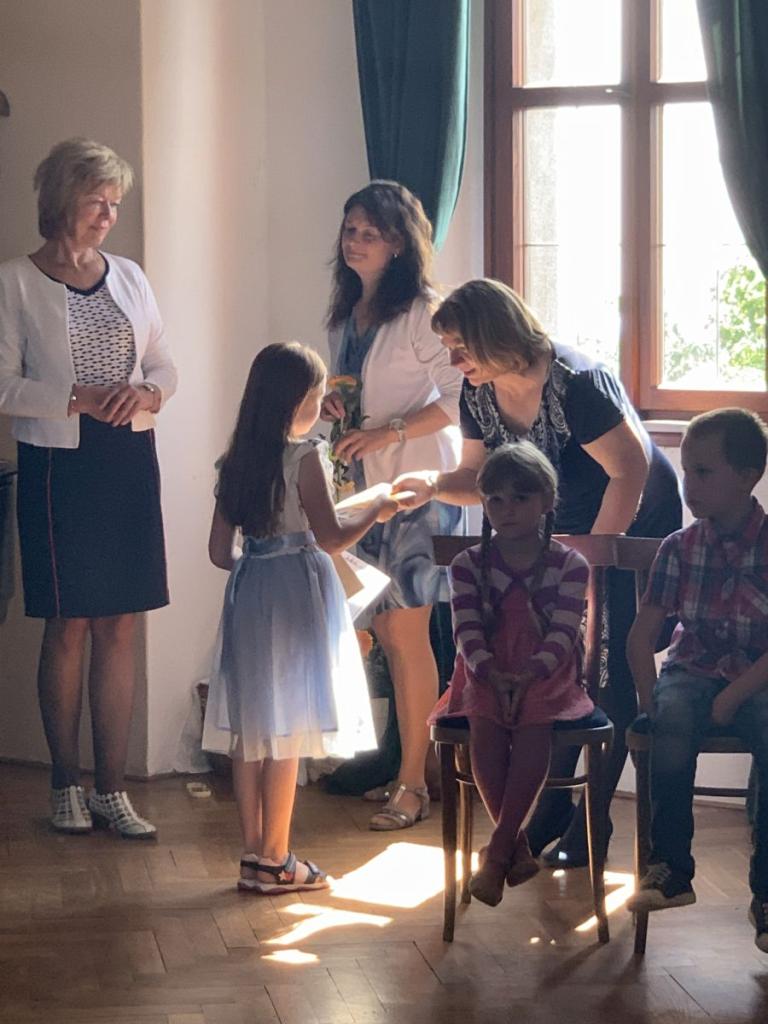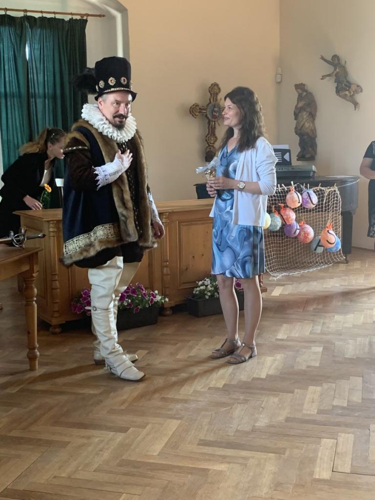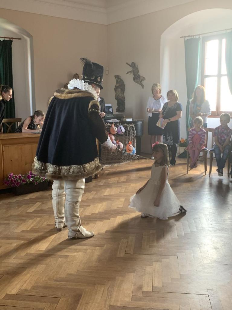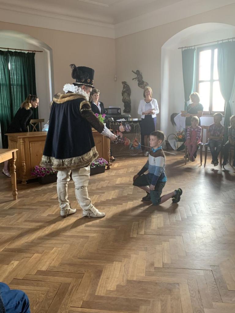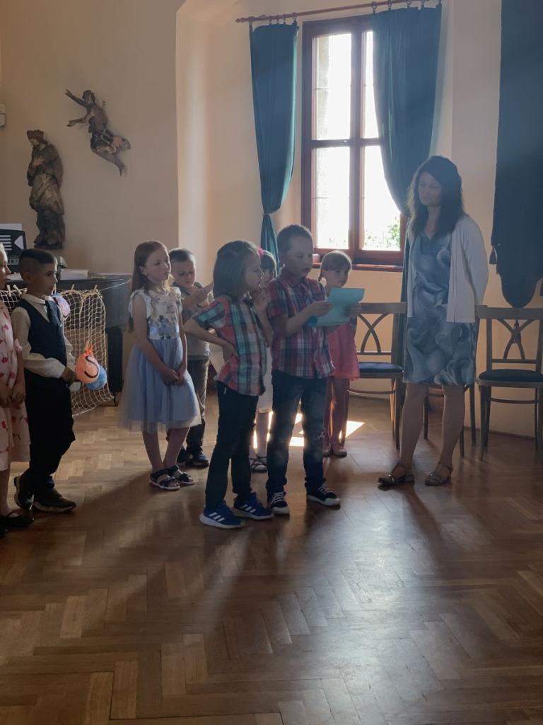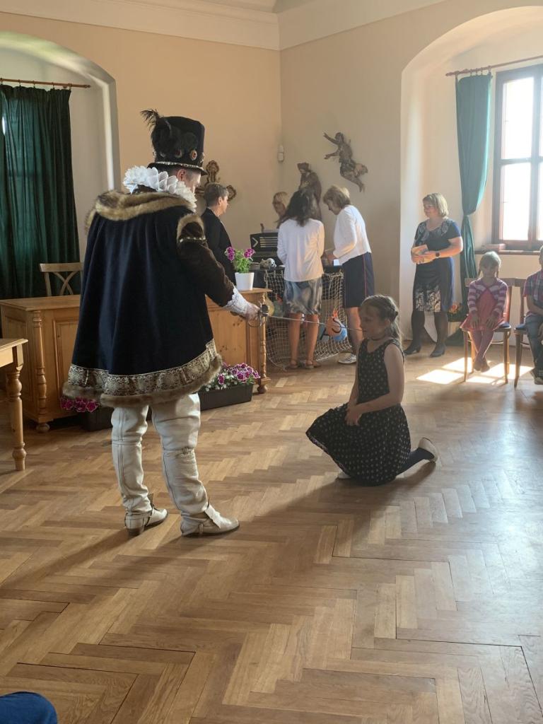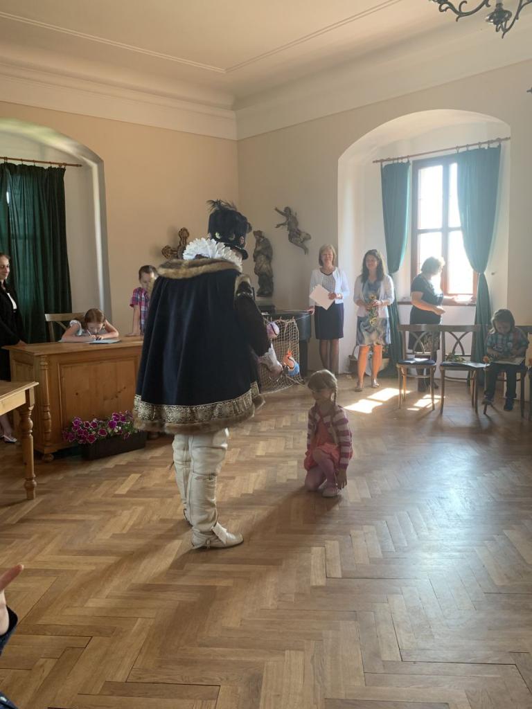 Dne 7.6.2024 bylo na hradě Pecka 14 našich prvňáčků slavnostně pasováno na čtenáře samotným Kryštofem Harantem.