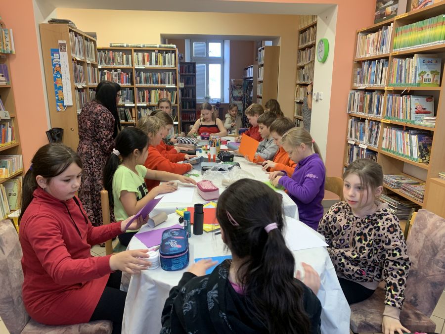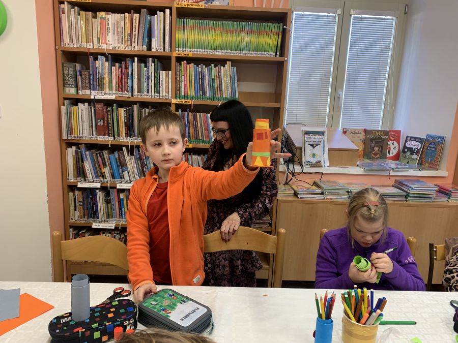 V pátek 11. 4. se v knihovně konala další dětská výtvarná dílna pod vedením naší lektorky Markéty. Děti z 3. třídy ZŠ si u nás vyráběly stojánky na tužky.